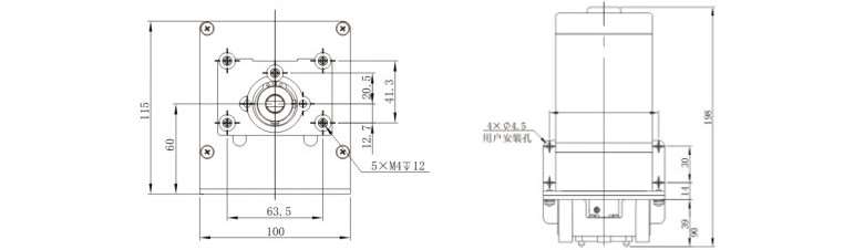 采用80直流減速電機(DC 12V或DC 24V)或80交流異步減速電機(AC 220V),轉速固定,結構簡單,提供底板或面板兩種安裝方式。具有標準泵頭支架,可以安裝多種泵頭。